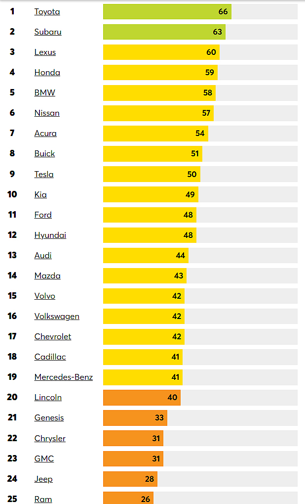 2. | Subaru | 63 |