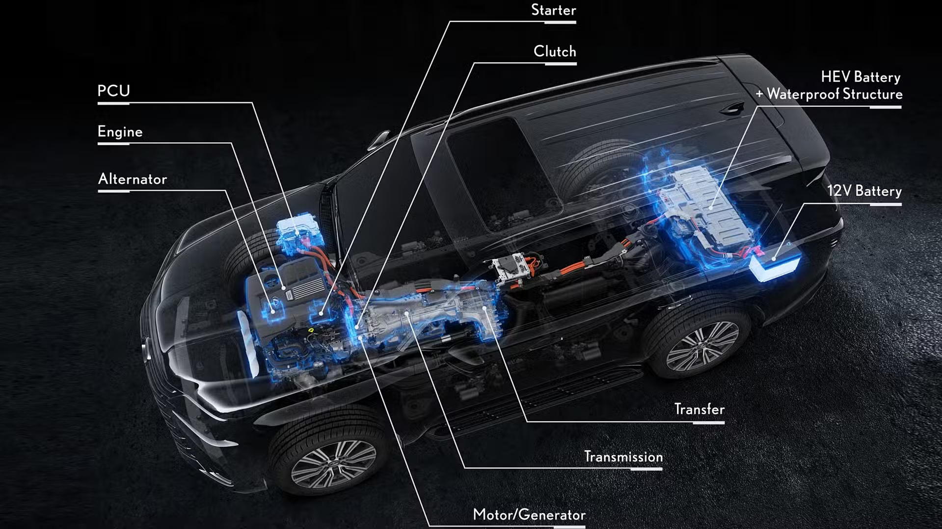 A Lexus LX 700h rendszere több ponton is eltér attól a konfigurációtól, amelyet a Toyota-csoport legtöbb öntöltő hibrid rendszere alkalmaz. Egyrészt, itt a belső égésű motor és a tízfokozatú automata sebességváltó közé építették be a 49 LE-s, 141 Nm-es villanymotort. Ennek energiaellátását egy 288 voltos, 1,87 kWh kapacitású NiMH akkumulátor biztosítja. Másrészt, habár ez a villanymotor normál üzemi körülmények között indítómotorként és generátorként is szolgál, a Lexus mindkettőből beépített egy-egy redundáns komponenst. Ezzel szavatolható, hogy amennyiben komoly terepigénybevétel esetén meghibásodna a hibrid rendszer, a jármű tisztán benzinmotoros üzemben folytathassa útját.